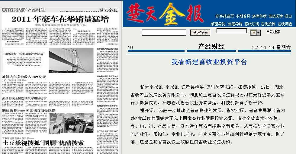 楚天金報訊?金報訊?記者吳翠華?通訊員龔志紅、江博報道:12日,湖北畜牧產(chǎn)業(yè)發(fā)展投資有限公司、湖北加正嘉畜牧投資有限公司在光谷資本大廈舉行了揭牌儀式。標(biāo)志著我省畜牧業(yè)資本營運、科技創(chuàng)新有了新平臺。