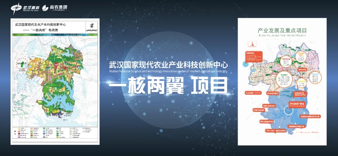 武漢國家現(xiàn)代農(nóng)業(yè)產(chǎn)業(yè)科技創(chuàng)新中心規(guī)劃布局為“一核兩翼三園多基地”,其中“一核兩翼”由光谷高農(nóng)生物園、南湖農(nóng)業(yè)園和中華科技產(chǎn)業(yè)園構(gòu)成,由武漢高科集團(tuán)全資企業(yè)高農(nóng)集團(tuán)負(fù)責(zé)建設(shè)運(yùn)營。