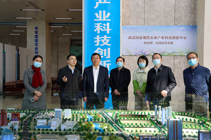 省農(nóng)業(yè)農(nóng)村廳副廳長項克強、總農(nóng)藝師李順清,武漢市政府副秘書長陳明權(quán),武漢市農(nóng)業(yè)農(nóng)村局黨組書記、局長王玉珍,東湖高新區(qū)管委會副主任李首文,武漢高科集團(tuán)黨委書記、董事長黃峰,總經(jīng)理高尚等參加調(diào)研。