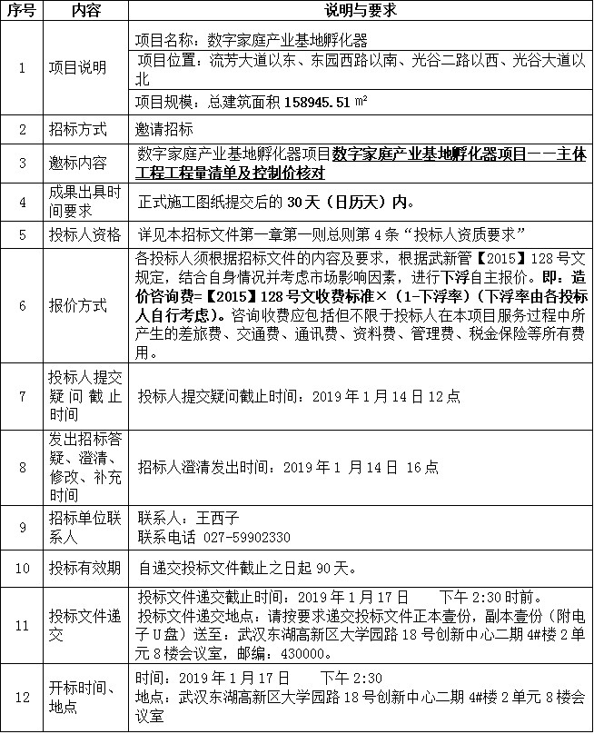根據(jù)《中華人民共和國招投標法》和有關(guān)規(guī)定,現(xiàn)采用邀請招標方式擇優(yōu)選定數(shù)字家庭產(chǎn)業(yè)基地孵化器項目造價咨詢服務(wù)單位。