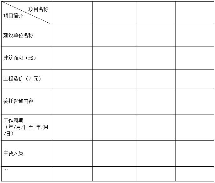 3、投標人近三年來類似工程造價咨詢工作的業(yè)績情況(不少于3個)。(格式詳附表1)
