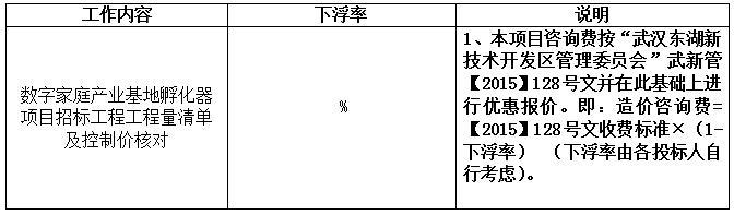 采用:按武新管【2015】128號文相關(guān)要求,進行下浮報價,即:造價咨詢費=【2015】128號文收費標準×(1-下浮率)(下浮率由各投標人自行考慮)。