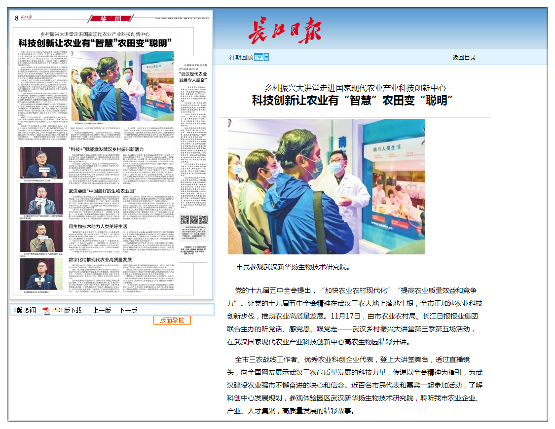 長江日報:鄉(xiāng)村振興大講堂走進(jìn)國家現(xiàn)代農(nóng)業(yè)產(chǎn)業(yè)科技創(chuàng)新中心 科技創(chuàng)新讓農(nóng)業(yè)有“智慧”農(nóng)田變“聰明”
