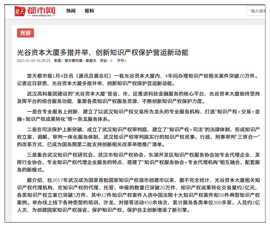 楚天都市網(wǎng):光谷資本大廈多措并舉,創(chuàng)新知識產(chǎn)權(quán)保護(hù)營運(yùn)新動能