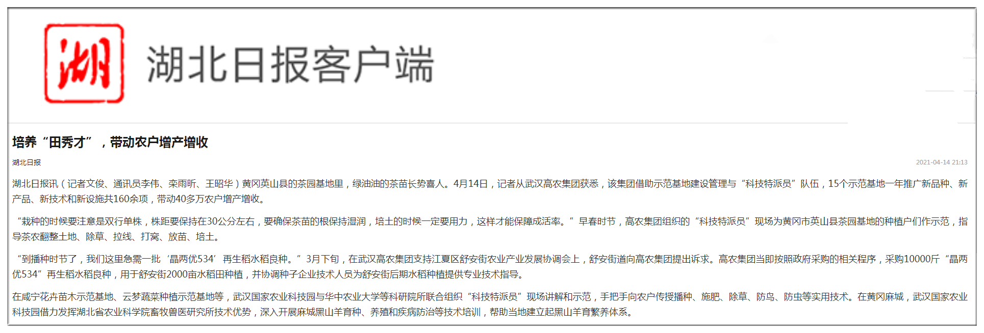 湖北日報:培養(yǎng)“田秀才”,帶動農戶增產增收
