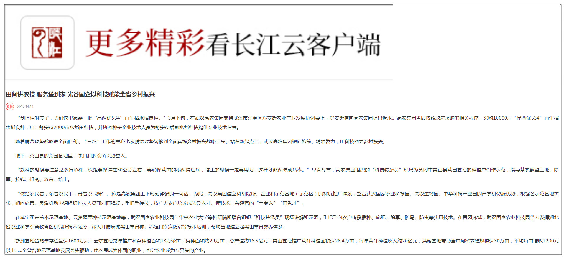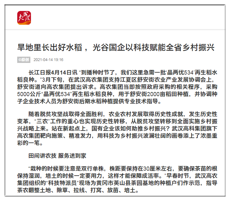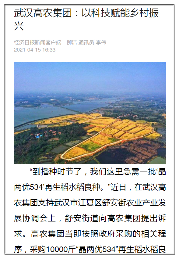 經濟日報:武漢高農集團:以科技賦能鄉(xiāng)村振興