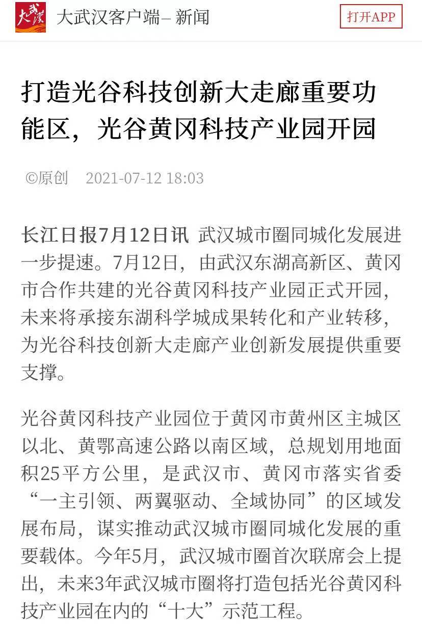 長(zhǎng)江日?qǐng)?bào)大武漢客戶端:打造光谷科技創(chuàng)新大走廊重要功能區(qū),光谷黃岡科技產(chǎn)業(yè)園開園