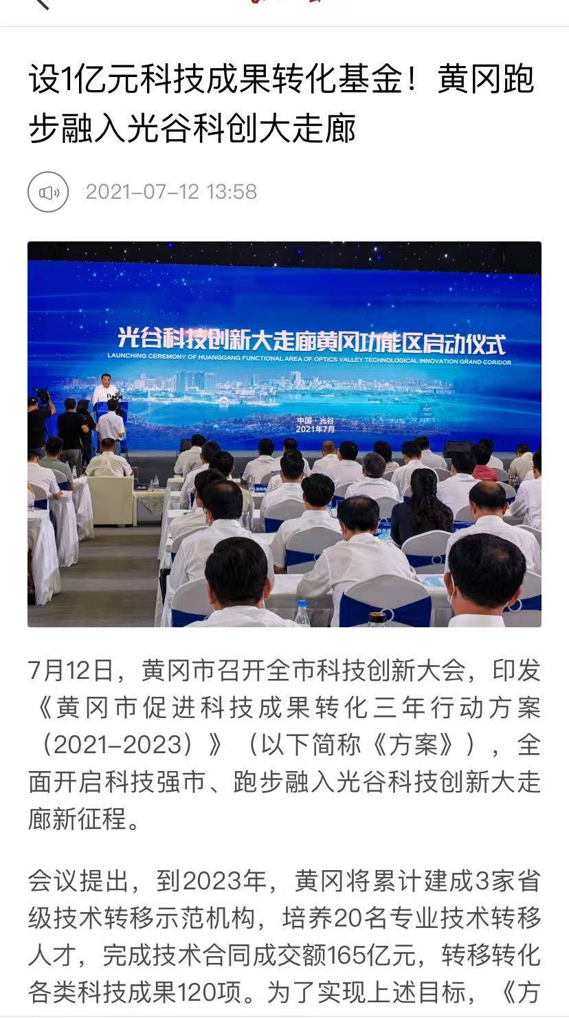 長(zhǎng)江云客戶端:設(shè)1億元科技成果轉(zhuǎn)化基金!黃岡跑步融入光谷科創(chuàng)大走廊