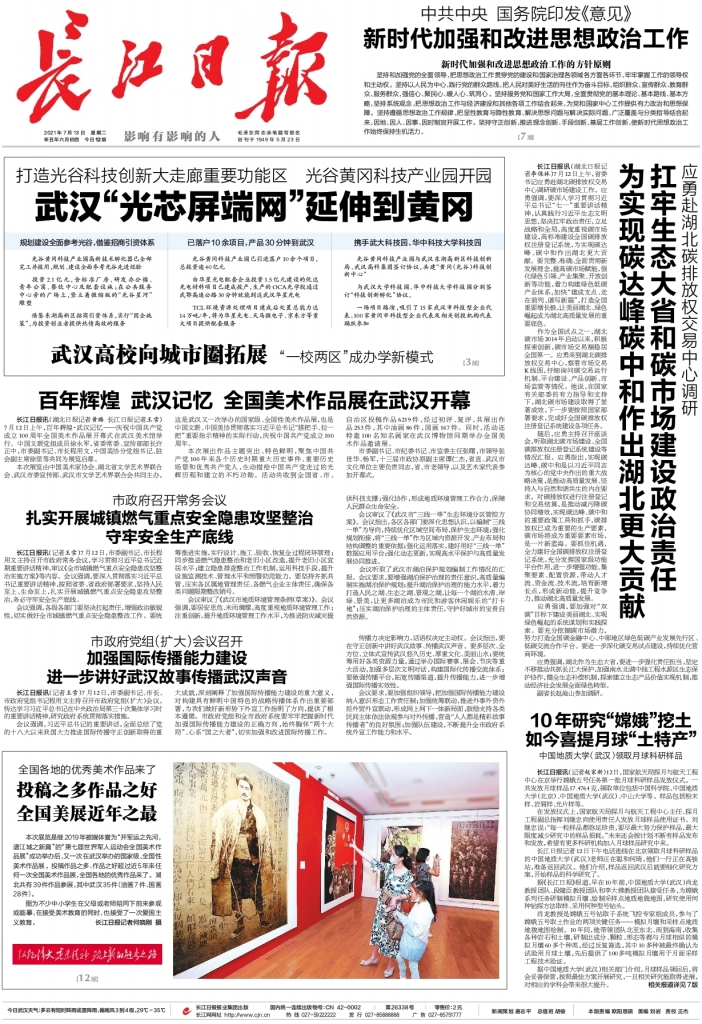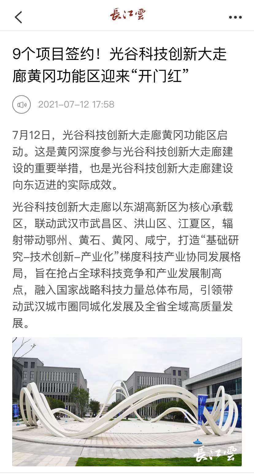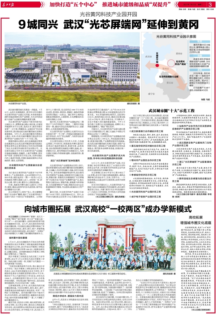 長(zhǎng)江日?qǐng)?bào):《光谷黃岡科技產(chǎn)業(yè)園開園?9城同興 武漢“光芯屏端網(wǎng)”延伸到黃岡》