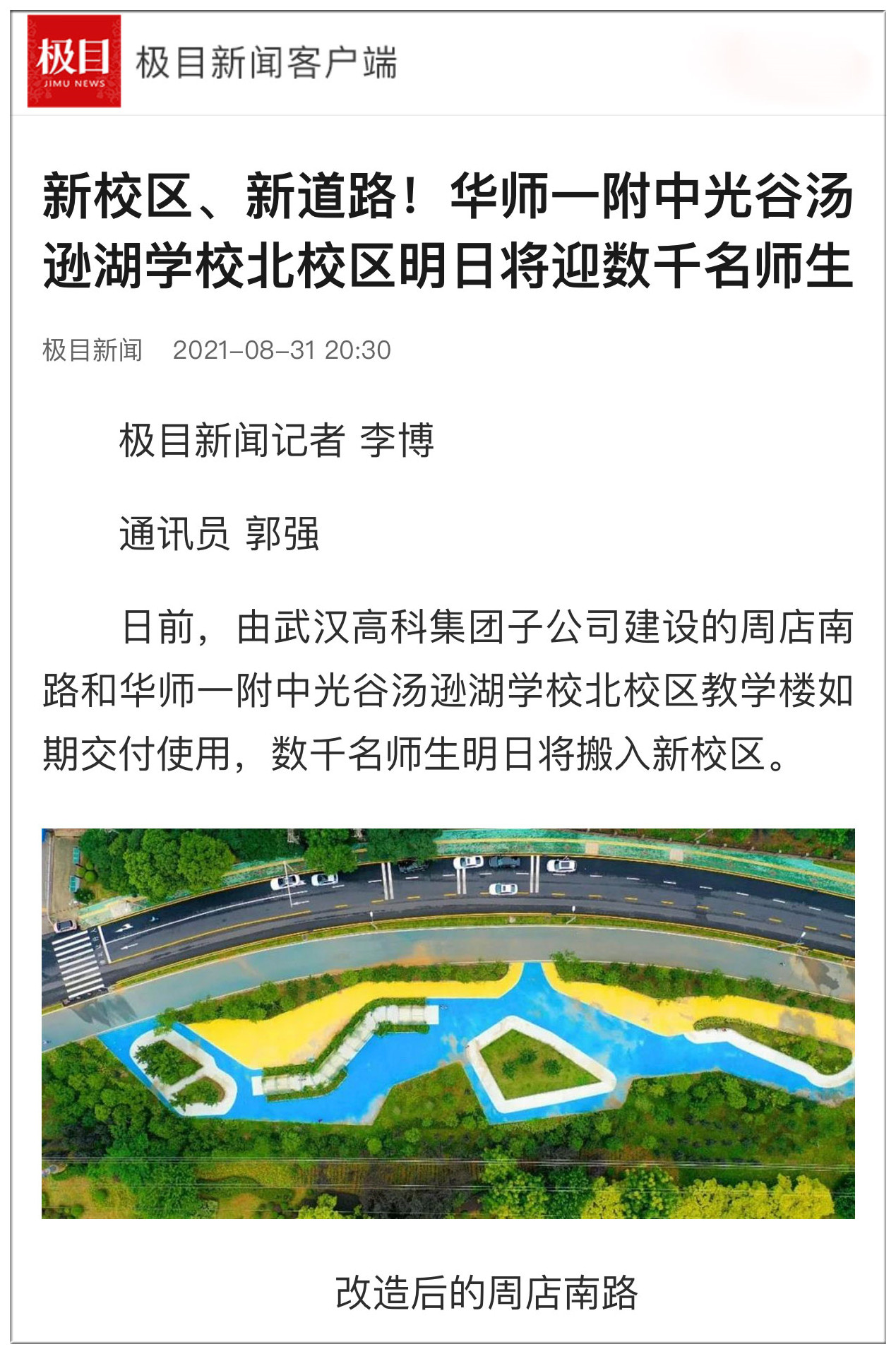 日前,由武漢高科集團(tuán)子公司建設(shè)的周店南路和華師一附中光谷湯遜湖學(xué)校北校區(qū)教學(xué)樓如期交付使用,數(shù)千名師生明日將搬入新校區(qū)。