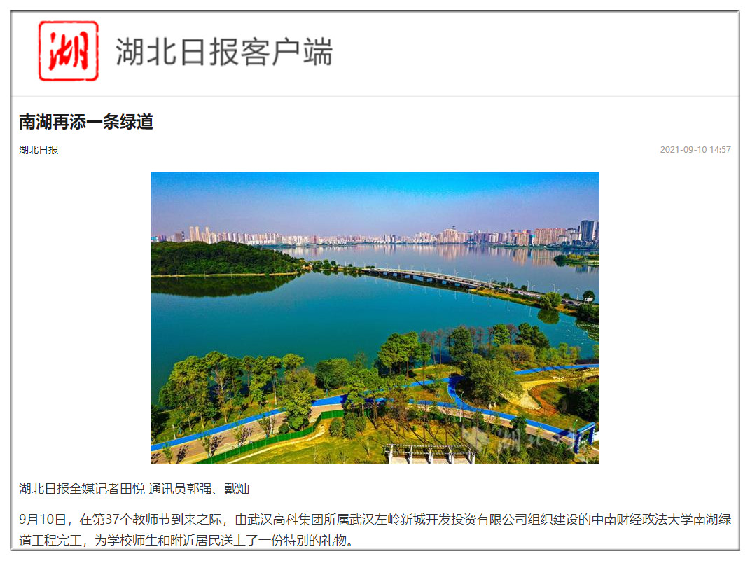 湖北日報:中南財經(jīng)政法大學(xué)南湖綠道完工