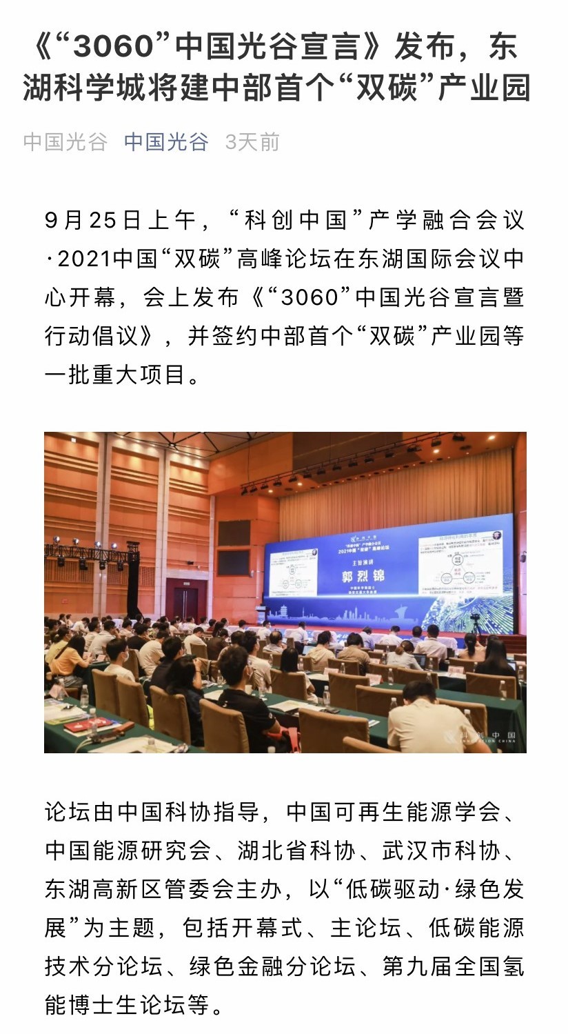 中國光谷:《“3060”中國光谷宣言》發(fā)布,東湖科學(xué)城將建中部首個“雙碳”產(chǎn)業(yè)園