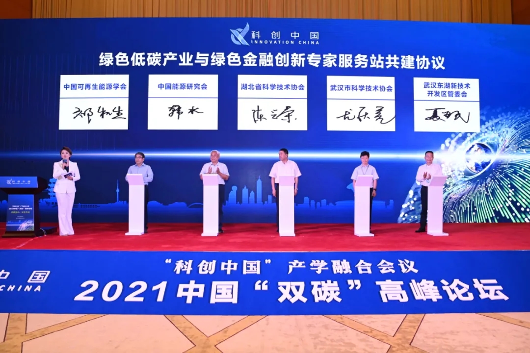 現(xiàn)場,中國可再生能源學(xué)會、中國能源研究會、湖北省科協(xié)、武漢市科協(xié)、東湖高新區(qū)管委會五方簽署協(xié)議,將在光谷共建綠色低碳產(chǎn)業(yè)與綠色金融創(chuàng)新專家服務(wù)站,并現(xiàn)場揭牌。