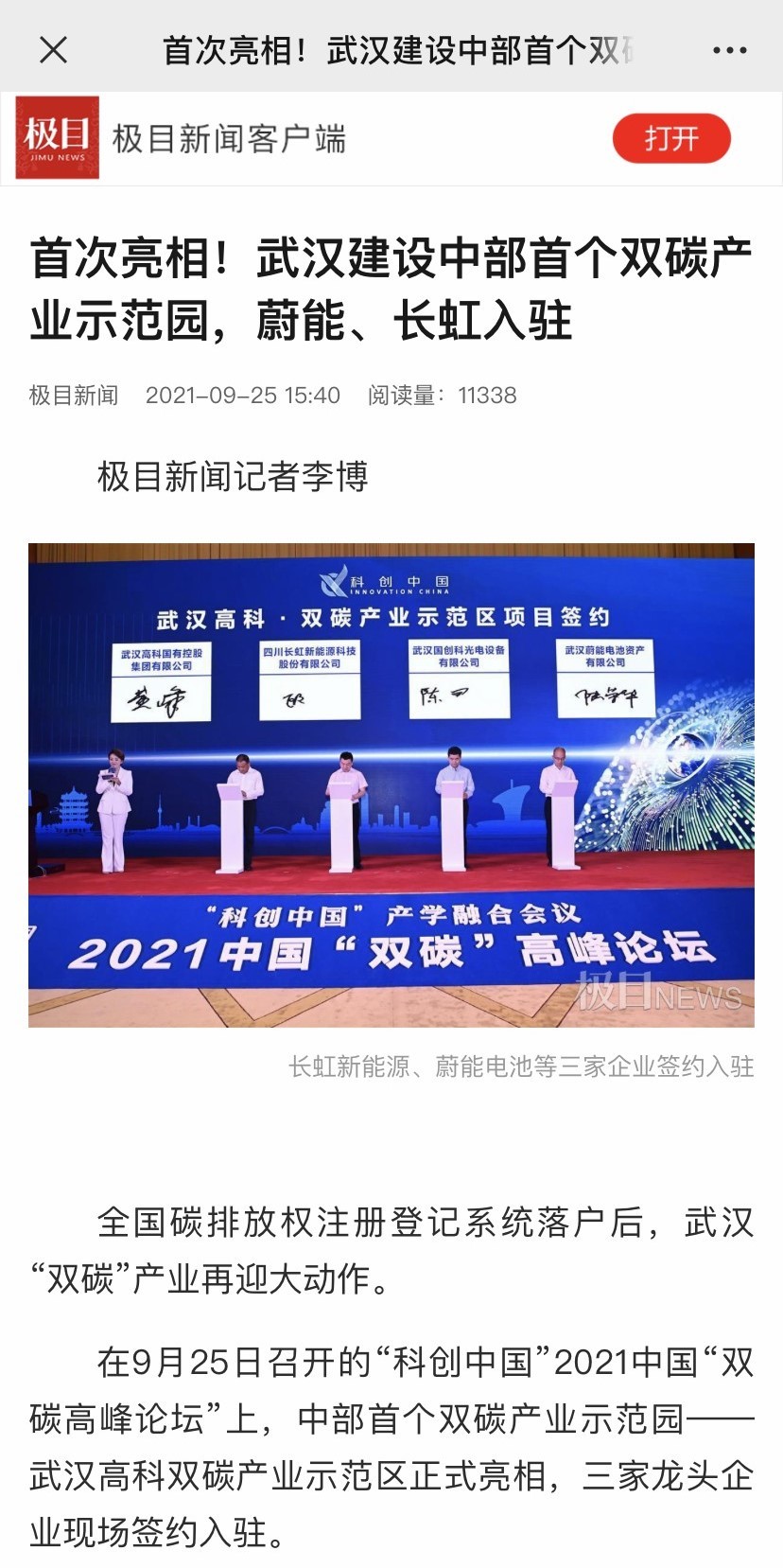 極目新聞:首次亮相!武漢建設(shè)中部首個雙碳產(chǎn)業(yè)示范園,蔚能、長虹入駐