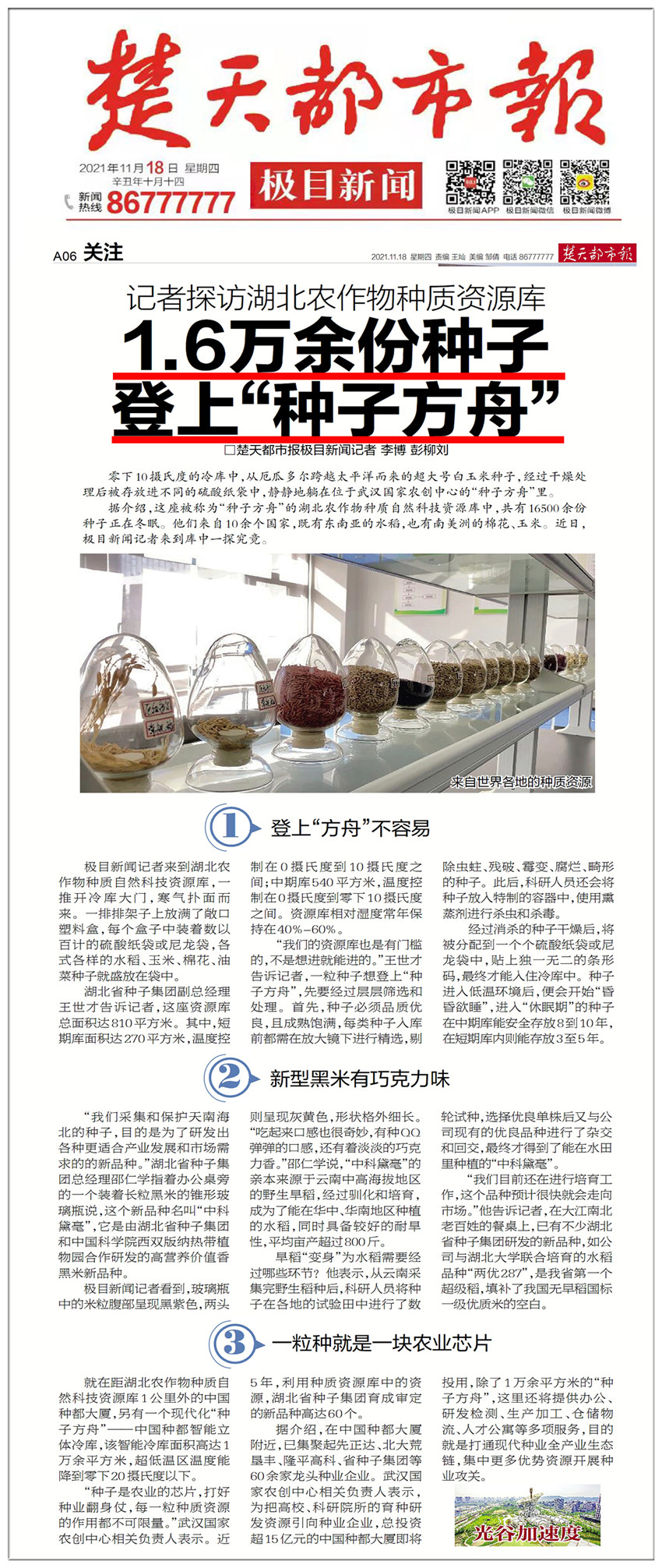 據(jù)介紹,這座被稱(chēng)為“種子方舟”的湖北農(nóng)作物種質(zhì)自然科技資源庫(kù)中,共有16500余份種子正在冬眠。他們來(lái)自10余個(gè)國(guó)家,既有東南亞的水稻,也有南美洲的棉花、玉米。近日,極目新聞?dòng)浾邅?lái)到庫(kù)中一探究竟。