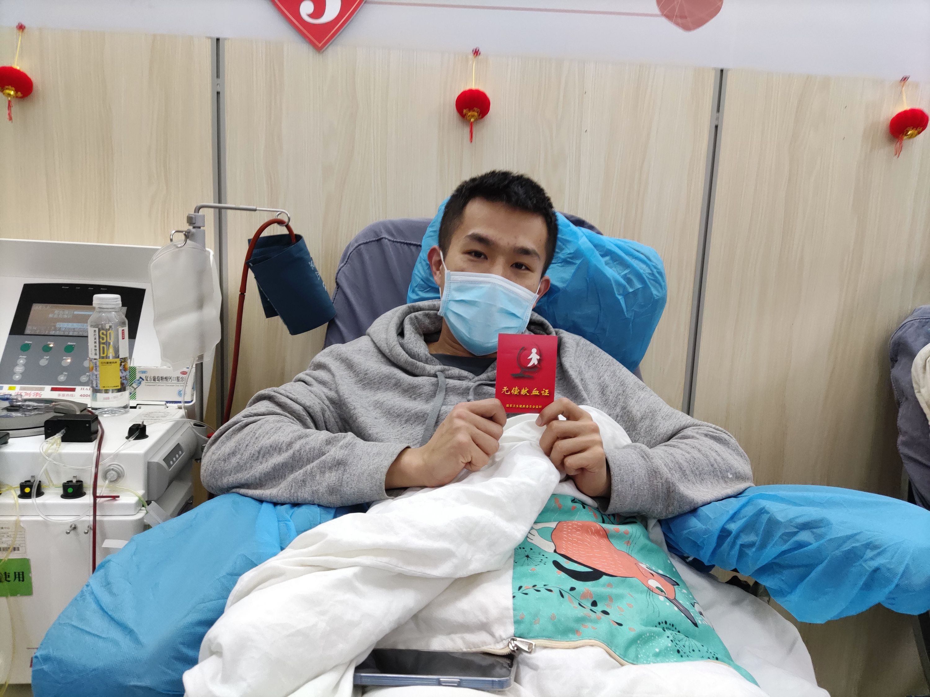 95后青年田源進(jìn)行無(wú)償獻(xiàn)血。